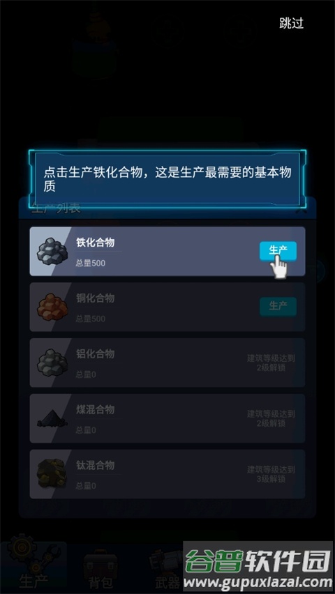 1、启动游戏后,点击界面左下角的生产按钮;