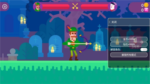 随着进度推进,可解锁更多角色与武器类型,包括弓箭、匕首、标枪等多样选择。游戏模式也较为丰富,除了标准对决,还有射击水果、飞鸟等挑战,每种模式都带来不同体验,考验玩家的操作与适应能力。