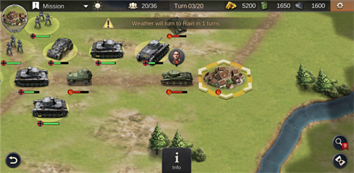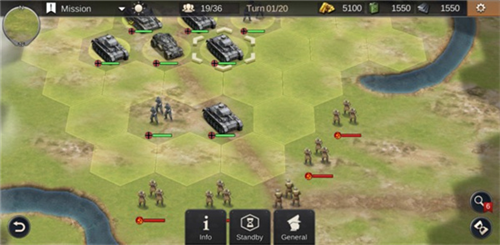 3、敌方部队将在你的回合结束后展开行动;待敌方行动完毕,便再次轮到你进行指挥与部署。