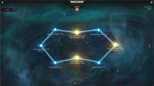 通过黄道宫分配属性点与天赋点,塑造角色发展方向;使用金币或遗忘星尘可重置点数。