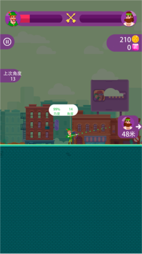 初期玩家或许觉得游戏依赖运气,实则不然。有经验的玩家会在首次射击时记录角度与位置,随后进行微调。角度与力度的控制至关重要,且击中对手后其位置会后移,需相应调整瞄准点。掌握规律后,你也能成为百发百中的神射手。