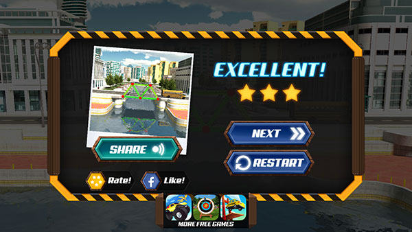 2、多样玩法:每一关都设定了独特的条件限制,你需要在这些约束下开动脑筋,设计出能让车辆安全通行的桥梁结构。