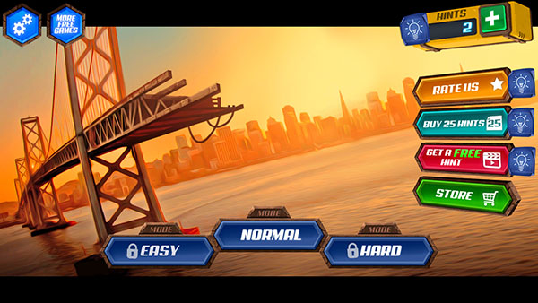 在桥梁设计师无限提示版这款休闲游戏中,你将扮演经验丰富的桥梁设计师,核心任务是在有限的预算内规划并建造出安全稳固的桥梁。游戏鼓励精打细算,因为节省下来的资金会归你所有。此版本经过特别调整,为你提供了无限的提示功能,并开放了所有游戏模式,等待你来挑战。