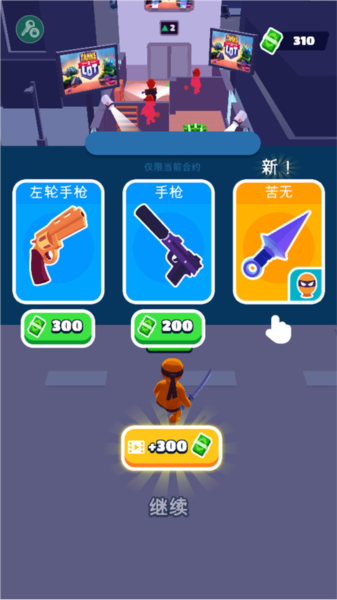 2、开局后系统随机提供多种武器,若想保留初始武器,可直接点击继续;