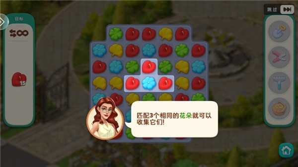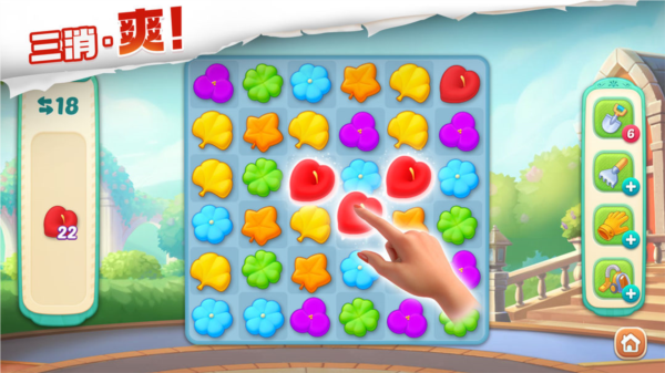 游戏以经典三消模式为核心,玩家通过消除相同花朵来收集资源;消除的数量越多,获得的资源就越丰厚。