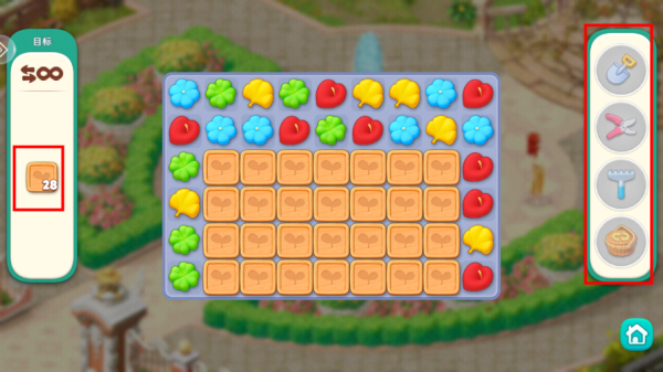 5、界面左侧显示剩余步数与通关要求,右侧是可使用的游戏道具。