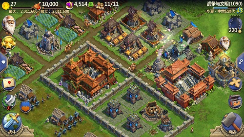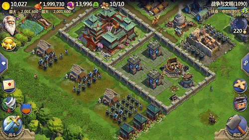 建议尽快升级至铁器时代,随后按自身节奏发展,避免过度追求进度导致疲惫;首次奇迹选择可根据偏好:金字塔侧重粮食,石阵侧重金币,花园两者兼顾,但游戏内资源主要依靠掠夺,因此推荐卫城以增强守军,其效果随卫兵营数量增加而越发关键。
