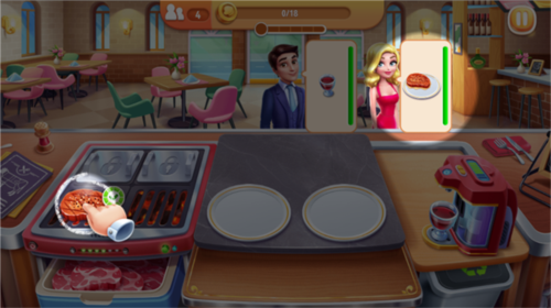 2、食材制作完成后,点击即可将食物交给顾客,饮品操作方式相同