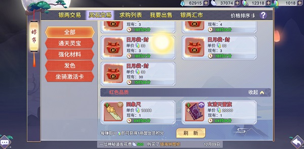 4、挑战“秘境探宝”副本,有机会得到通天灵宝或法宝图纸,通过坊市出售也能获得灵石与银两。