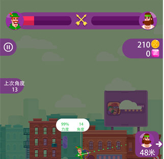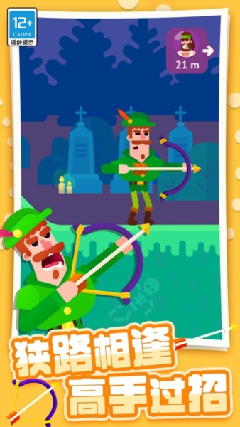 2、物理元素玩法:游戏中引入了物理元素,箭矢的飞行轨迹与弹射会受到重力与风力影响,增加了射击的难度与趣味性;