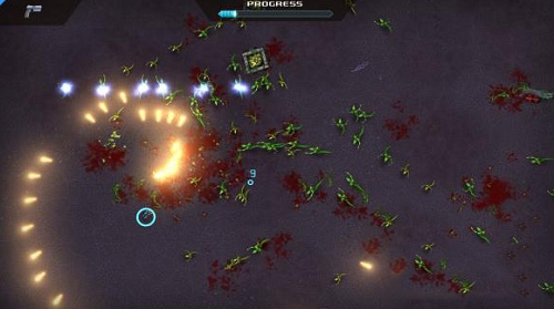 1.8:异形小队。开局解决左侧的绿色敌人拿到武器;本关需平衡火力,避免只攻击耐打的灰色怪物而忽略成群的小型绿色敌人。