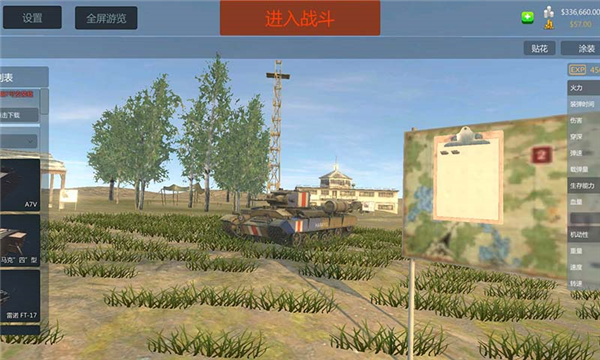 5、选定载具后,可自定义配件、涂装与贴花,完成配置后点击进入战斗。