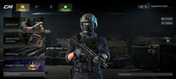 1、启动游戏进入主界面,点击图中所示的“FREE PACK”礼包入口;