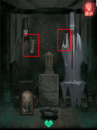 16、到城隍庙左边门出示令牌获得提示,据此调整右边时钟,打开取得符纸人;再次将符纸人放案台,点击画写状子。