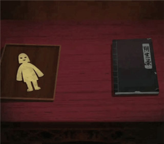 12、退出后将纸人放在中间有阴世录的桌上,回到墨水桌点击中间纸张触发对话,小孩出现。