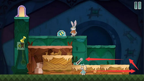 5. 根据提示,将红色方块向左拖动,拼合兔子图案并触发对话。