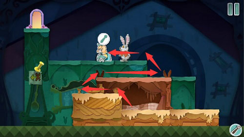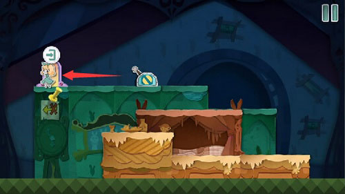 将带有拉杆的绿色方块移至合适位置,让安妮站上去并拉动拉杆。