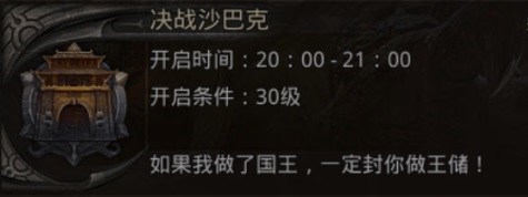 首次攻城在开服第五天举行,之后固定于每周三和周六进行,每次持续一小时;以活动结束时占领皇宫的行会为胜利方,奖励包含盾碎、高阶勋章、时装与称号等。