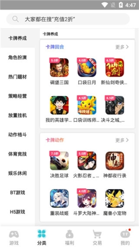 2、点开分类一栏,可以按照自己想玩游戏的类型查找游戏