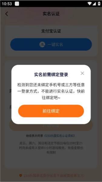 3、实名认证前需要绑定登录,绑定手机号后,即可通过认证