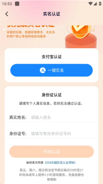 2、玩家可以通过支付宝进行一键实名,也可以通过身份证进行实名认证
