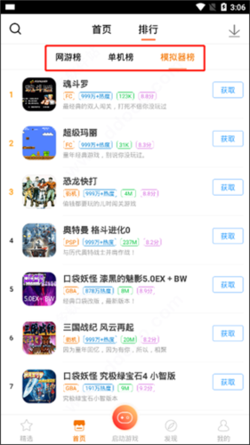 2、首页还设有网游榜、单机榜、模拟器榜等排行榜单。