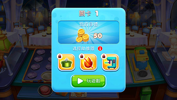 2、查看本关卡的具体目标要求,然后点击开始游戏按钮正式进入厨房。