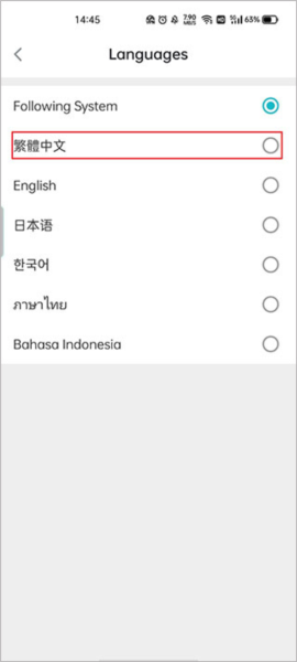 4、选择“繁体中文”;该软件支持繁体中文、韩语、日语、英语等多种国家语言;
