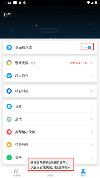 6、再次点击桌面悬浮球功能,之后即可通过点击屏幕上的悬浮球快速启动游戏。