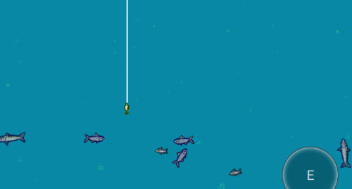 1、从画面最左侧开始互动钓鱼,鱼线会自动向下垂放。