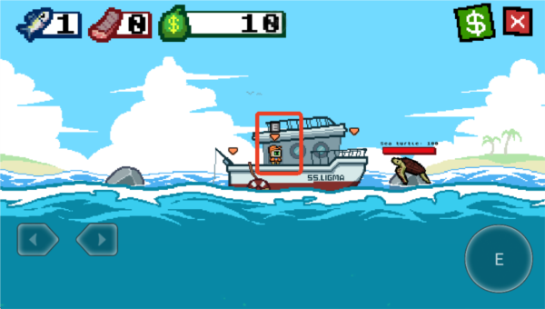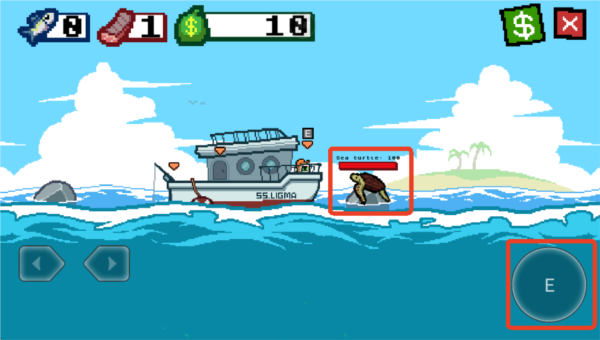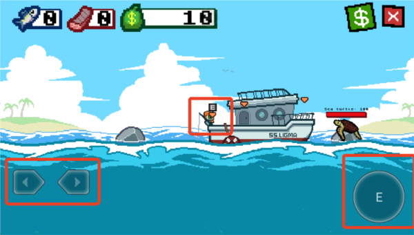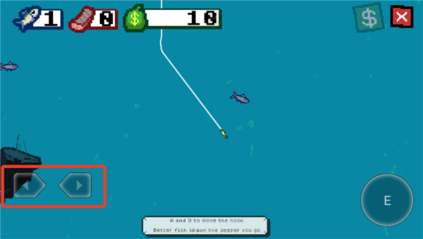 2、利用右下角按键控制鱼钩方向,撞击鱼类造成伤害,累积足够伤害即可成功钓起。