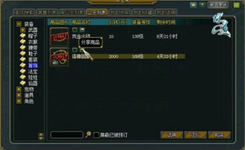 1、问道游戏对奇宝斋功能进行了整体升级,新增了商品分享与试用等特性,下面我们来具体了解。