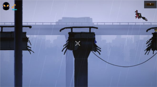 4、除了大跳跃,玩家还可运用之前学会的攀住边缘的操作躲避恶犬。当获得冲刺闪现等技能后,教学环节也会立即跟进;如同大跳避犬的环节一样,从精细操作逐步过渡到带有心理压力的极限应对,循序渐进地推动玩家进步。