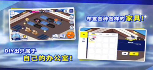在办公室内自由布置家具,打造个性化空间;提升办公室等级还能解锁更多互动玩法。