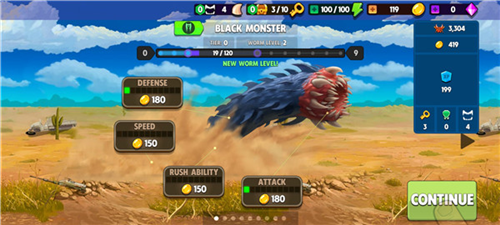 2、每通过一个关卡,即可为蠕虫进行一次能力提升,进化方向可由玩家自主决定;