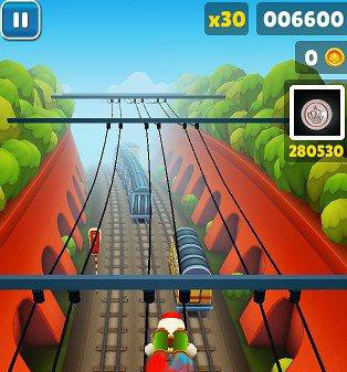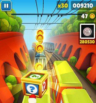 奔跑途中需灵活应对各类障碍:较低障碍需跳过,较高障碍需滑行通过;获得弹簧鞋道具后可直接跳上障碍物与火车顶部。