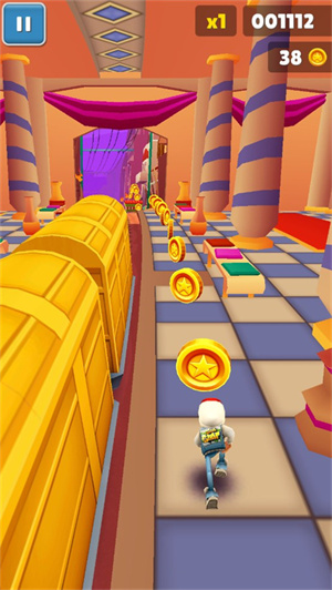 游戏基本操作采用滑屏控制:向上滑动为跳跃,向下滑动为翻滚,左右滑动可切换轨道。遇到火车、栏杆等障碍时需及时躲避;撞击大型障碍会导致游戏结束,撞击小型障碍则会减速并被警察拉近距离。