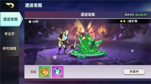 在联盟中进行遗迹发掘可获得金币与联盟币,联盟币可用于商店兑换道具;通过升级矿脉与考古研究可提升发掘收益。