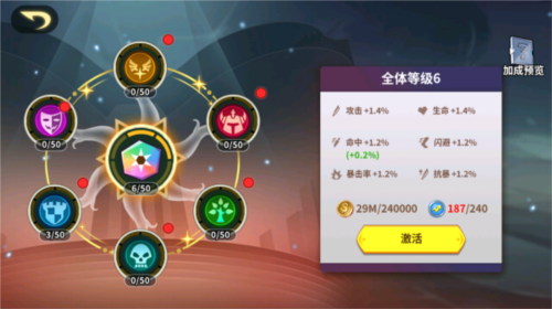 消耗联盟贡献可升级联盟符文,包括主符文与阵营符文;主符文为全队提供加成,阵营符文则强化对应阵营的英雄,两者效果同时生效。