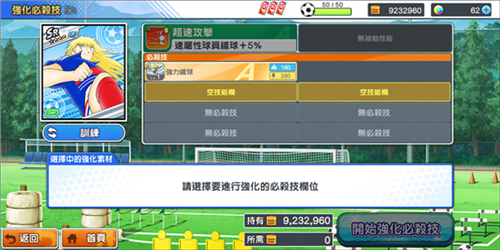 注意:用于强化必杀技的球员会消失,选择时需留意其掌握的必杀技数量。
