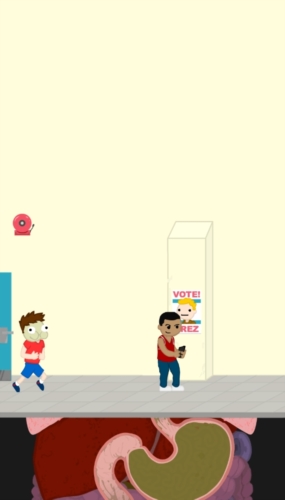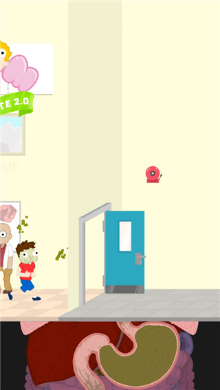 上课时肚子突然一阵翻江倒海,你必须立刻冲向厕所。但路上充满了各种想阻止你的同学,他们扔纸飞机、挥拳头,甚至打篮球干扰你。你唯一的武器就是呕吐物,用它击退所有拦路者,开辟通往卫生间的道路。这款游戏以独特的恶搞风格和物理弹射玩法,带来一场别开生面的爆笑冒险。