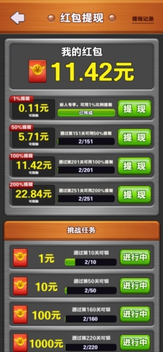 5、通过挑战关卡赢取现金红包的设计,显著增强了游戏对玩家的吸引力。
