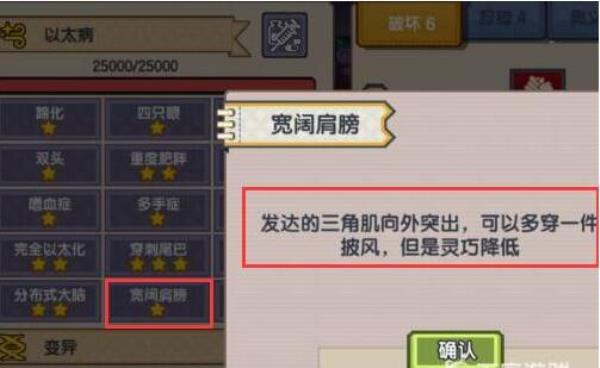 玩家在正常游戏过程中,有一定概率感染名为“宽敞肩膀”的以太病,保留此病症即可增加一个背部。
