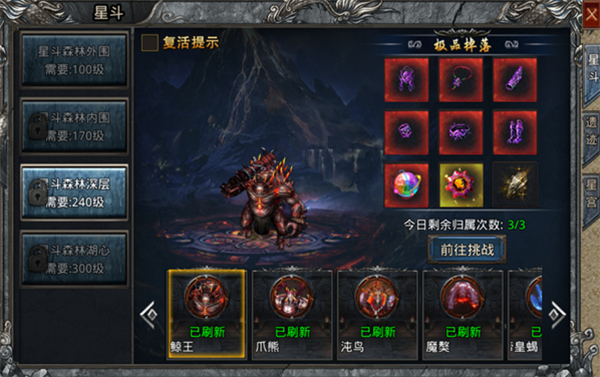 星斗森林作为跨服打宝副本,包含森林主体、遗迹及天枢·贪狼星宫等区域;传闻中的顶级苍穹系列装备,便产自于此。