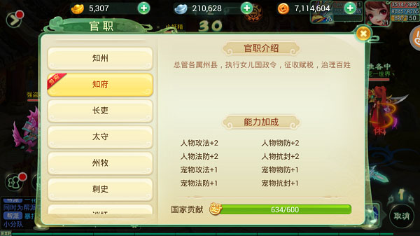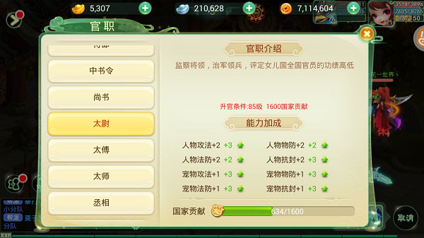 每一级官职都会提供特定的修炼技能加成,官职越高,所获得的加成比例也越高。