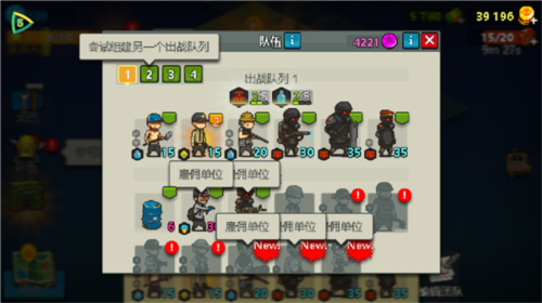 2、画面左上角会持续积累勇气点,随时间自动增长;利用这些点数可以派遣作战单位,不同单位消耗的点数各异;