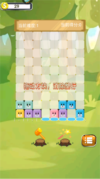 3.通过拖动屏幕上的方块,使其填满一行或一列来完成消除。