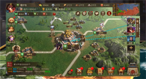 游戏从背景故事、武将设定到战场环境,多角度还原了三国的宏大世界。玩家进入游戏首先需选择国家,蜀、魏、吴各有特点:蜀地易守难攻,吴地资源丰富,魏国疆域辽阔。选择之后,便需通过不断发展、扩张领土,运用谋略与其他玩家竞争资源,最终实现一统江山的伟业。
