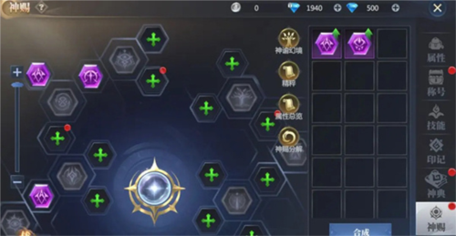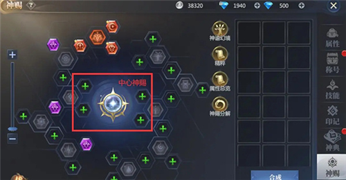 2、神赐装备:分为外圈神赐与中心神赐,每种只能装备在对应的孔位上。