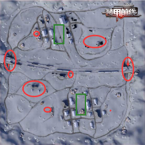 该模式的核心在于保持生存,以下提供部分可供参考的战术点位。图中箭头标注的桥洞区域是不错的选择,但不要完全进入,保持可进可退的灵活性。面对可快速击败的敌人可主动出击,遇到强势对手则建议回避。红色标记区域通常具有较好的掩护与转移路线;绿色标记区域因视野开阔易遭多方攻击,风险较高,应谨慎进入。